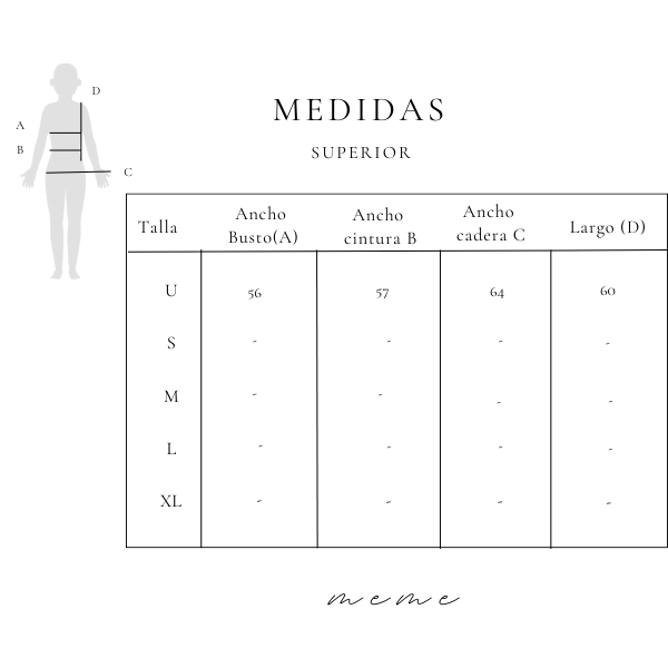 * las medidas pertenecen al ancho de la prenda y no al contorno*